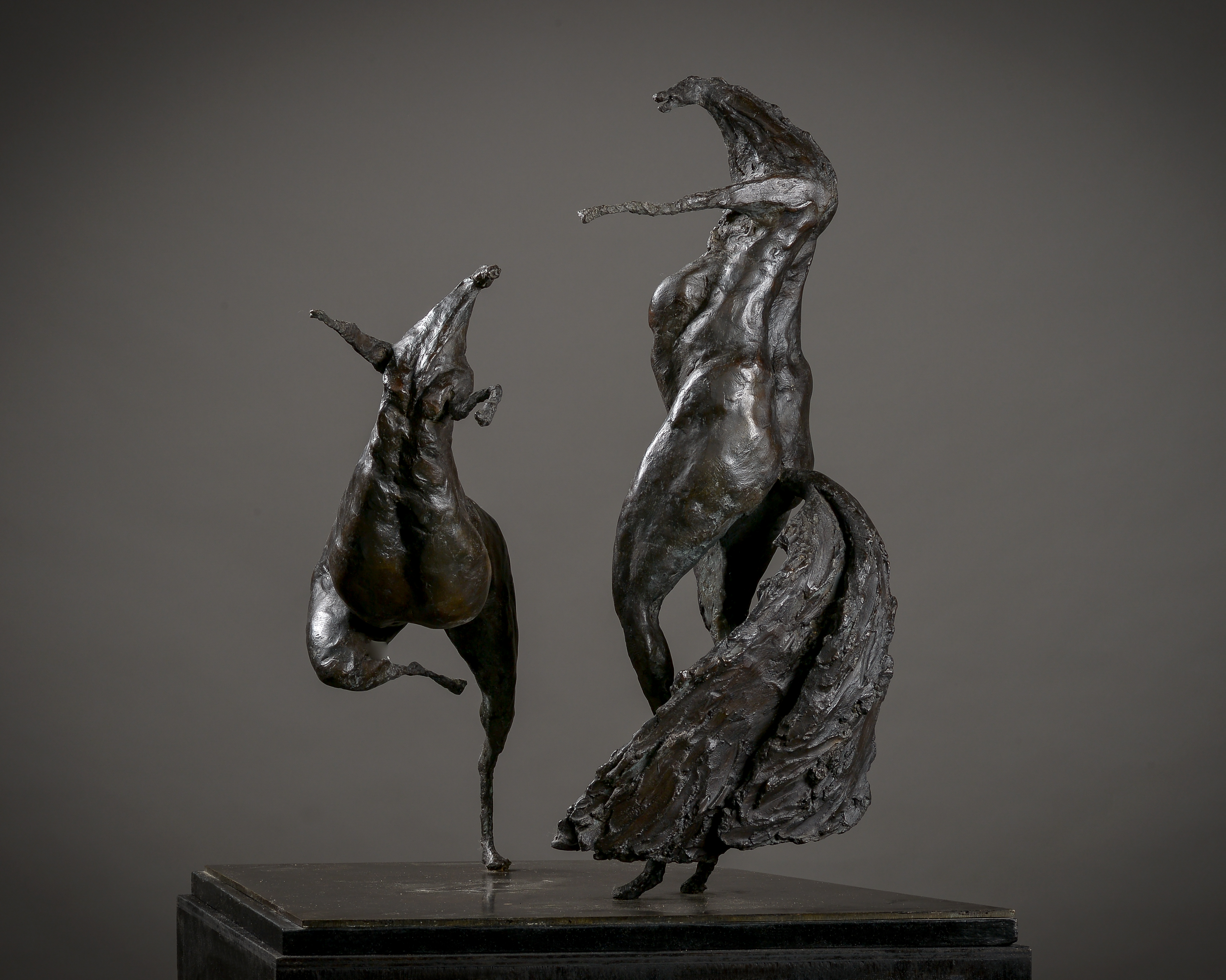 Le Triptyque représente la parabole de l’Existence: la Lutte, l’Amour, la Mort. Envol baroque ou vertige d’une chute. Les 3 groupes originaux de sculptures sont réalisés en ciment. Ils sont fondus en bronze, fonte d’art par la Fonderie Chapon (France), signée et numérotée.