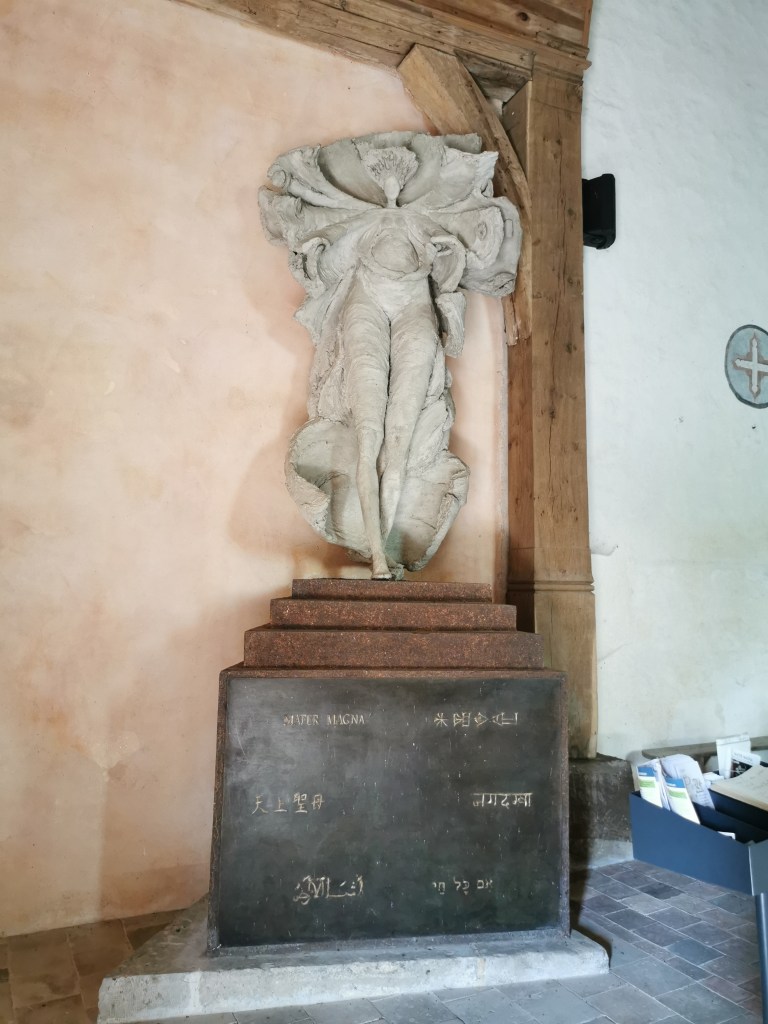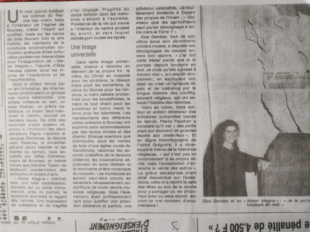Une oeuvre monumentale oecuménique en ciment, une commande de la commune de Boursay pour son église IMH, érigée à l’entrée de l’église à côté de fresques murales du XIV siècle représentant l’enfer.